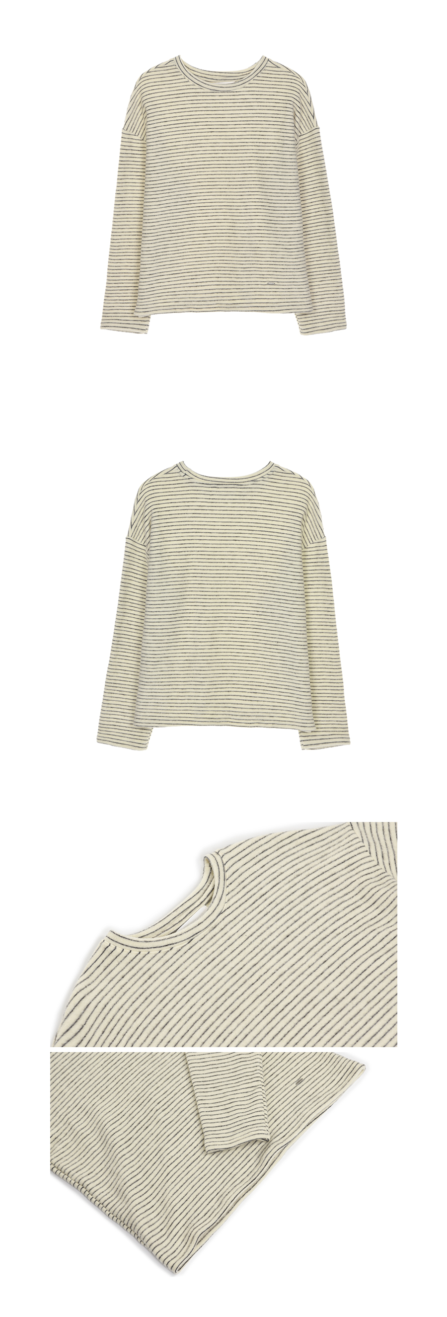 > STRIPE FLEECE LONG SLEEVE TOP_CREAM