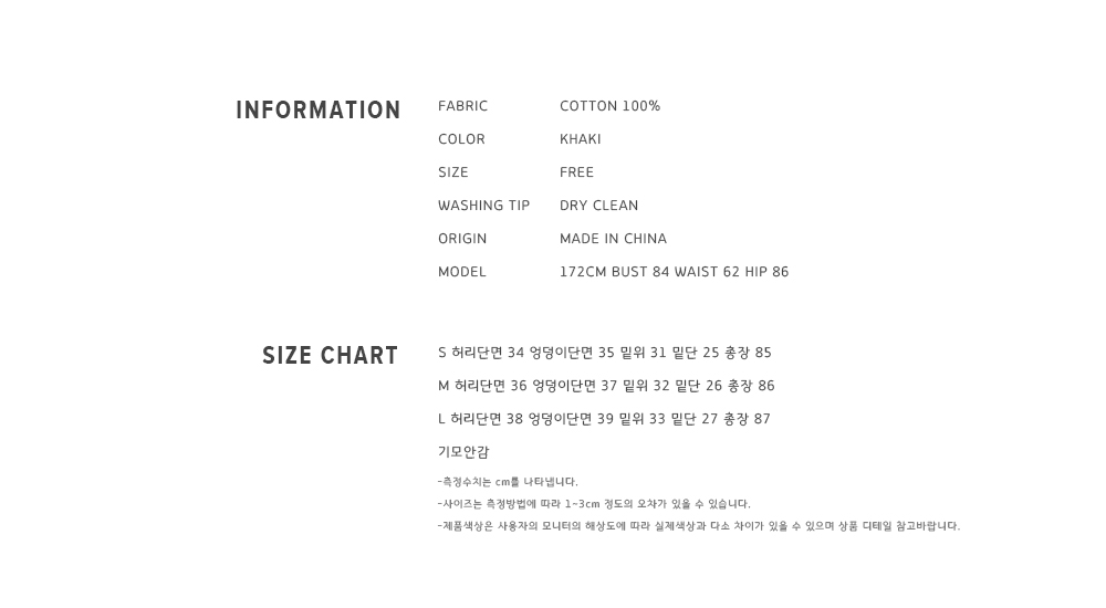 Item size chart 사이즈 기준표