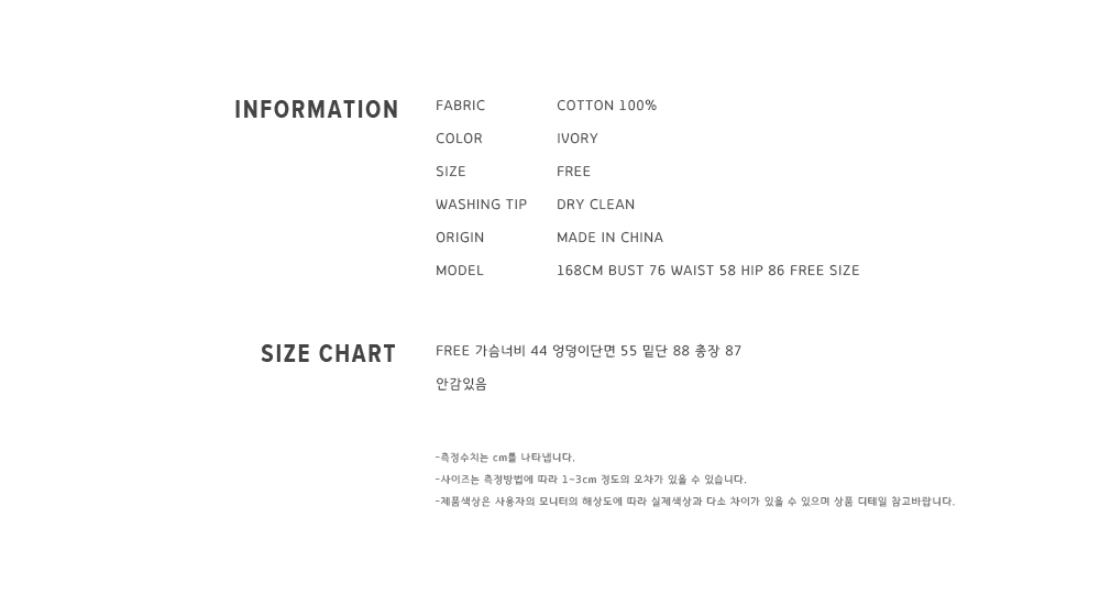 * 상품사이즈 치수는 재는 방법과 위치에 따라 1~3cm 오차가 있을 수 있습니다.