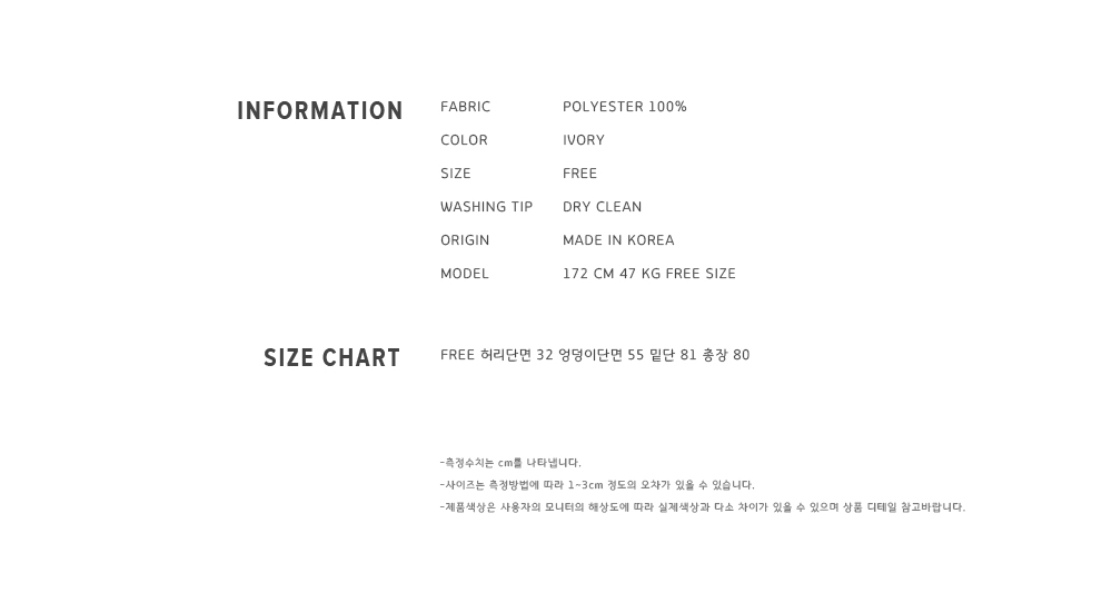 * 상품사이즈 치수는 재는 방법과 위치에 따라 1~3cm 오차가 있을 수 있습니다.