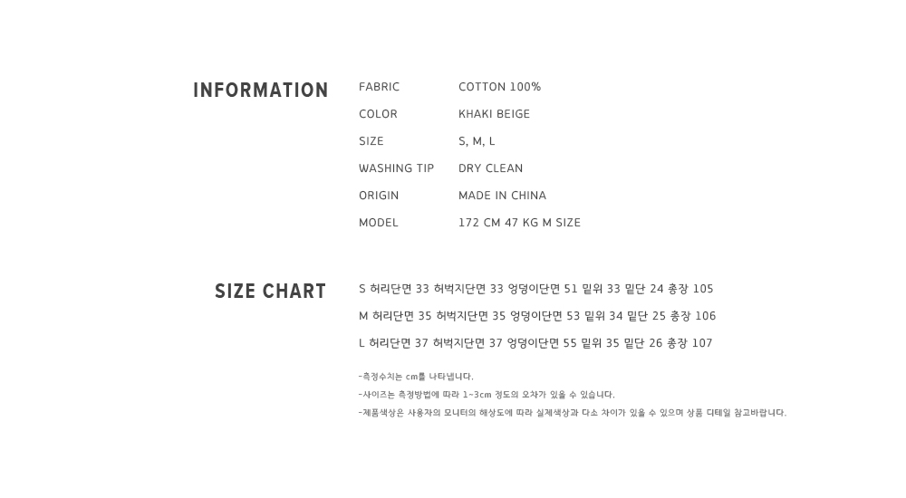 Item size chart 사이즈 기준표