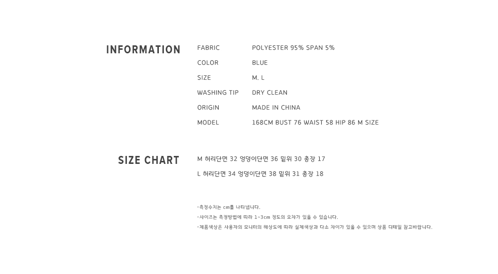 Item size chart 사이즈 기준표