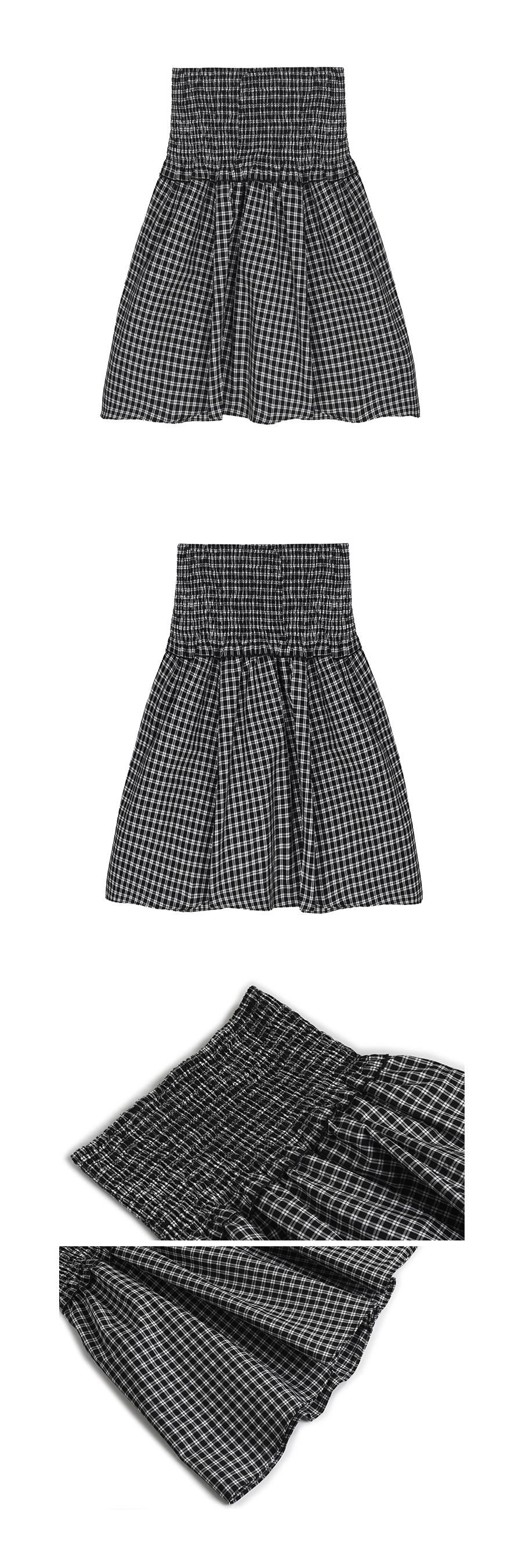 SMOKE FLARE CHECK SKIRT_BLACK