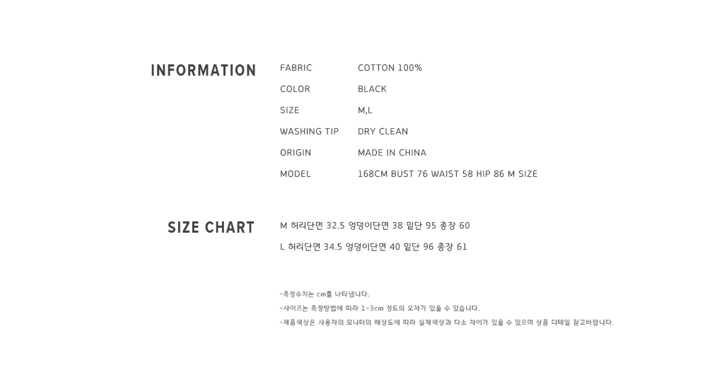 Item size chart 사이즈 기준표